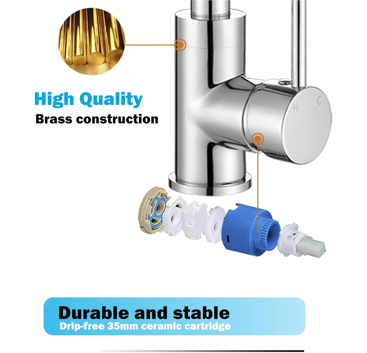 ★Sealed Cartridge★: The Kitchen Faucet ceramic cartridge has been tested for many times and has a durable ceramic seal for good sealing and long service life. The ceramic coil is well sealed, not easy to leak.