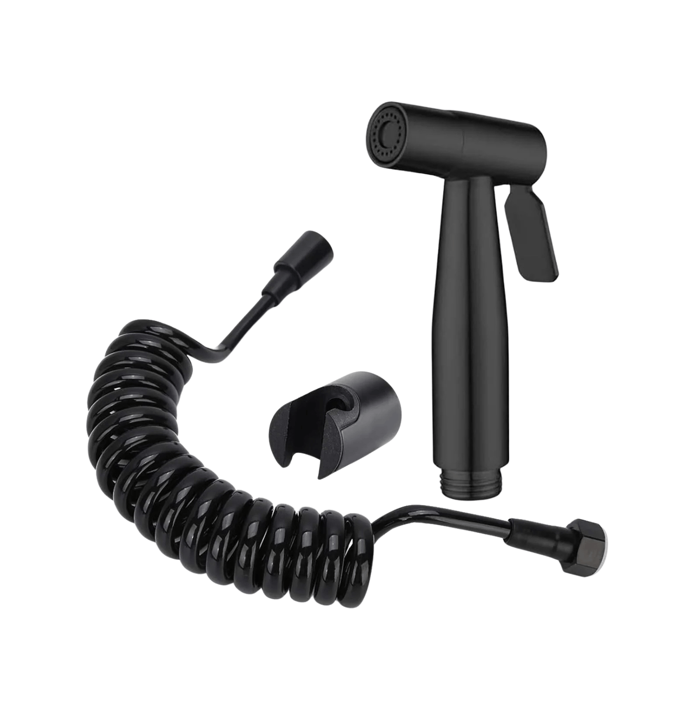 Fossa Hand Held Bidet Sprayer Premium Stainless Steel Sprayer - Health Faucet for Toilet, with 1 Mtr Spring Flexible Shower Hose Pipe,Hook (Black)