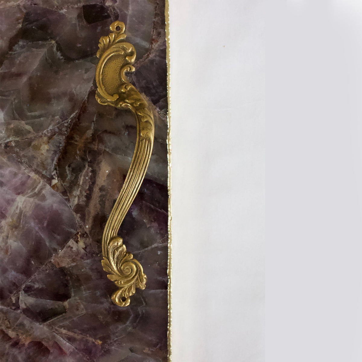 The natural look of agate stone creates a unique abstract pattern on this serving board. The tray is ideal for serving cheese or a fruit course.