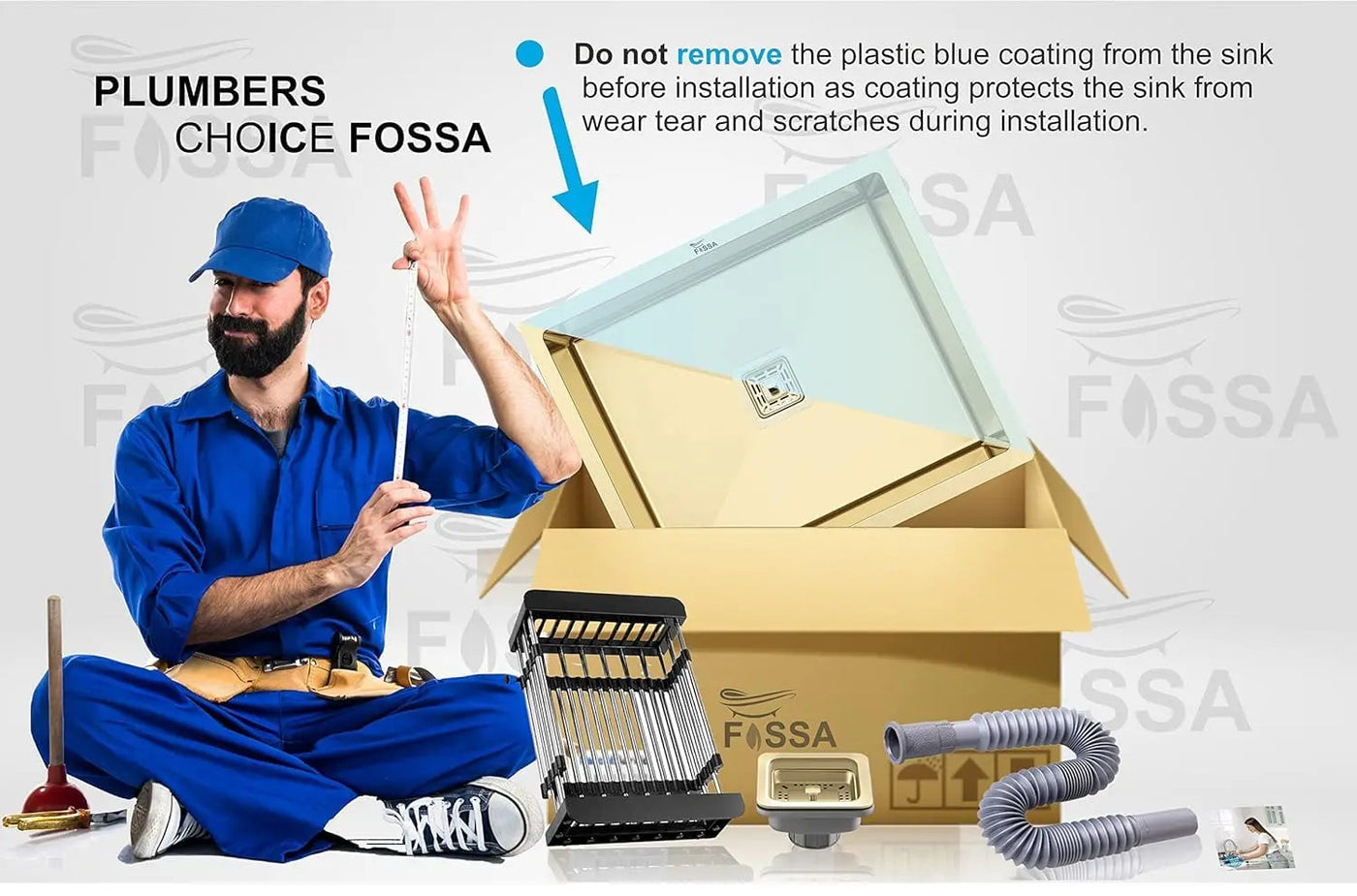 - Fossa Single Bowl Kitchen Sinks are skillfully handcrafted and have welded and slightly rounded corners to prevent dirt from getting stuck allowing hassle-free cleaning and cross grooves on the base to ease water drainage.