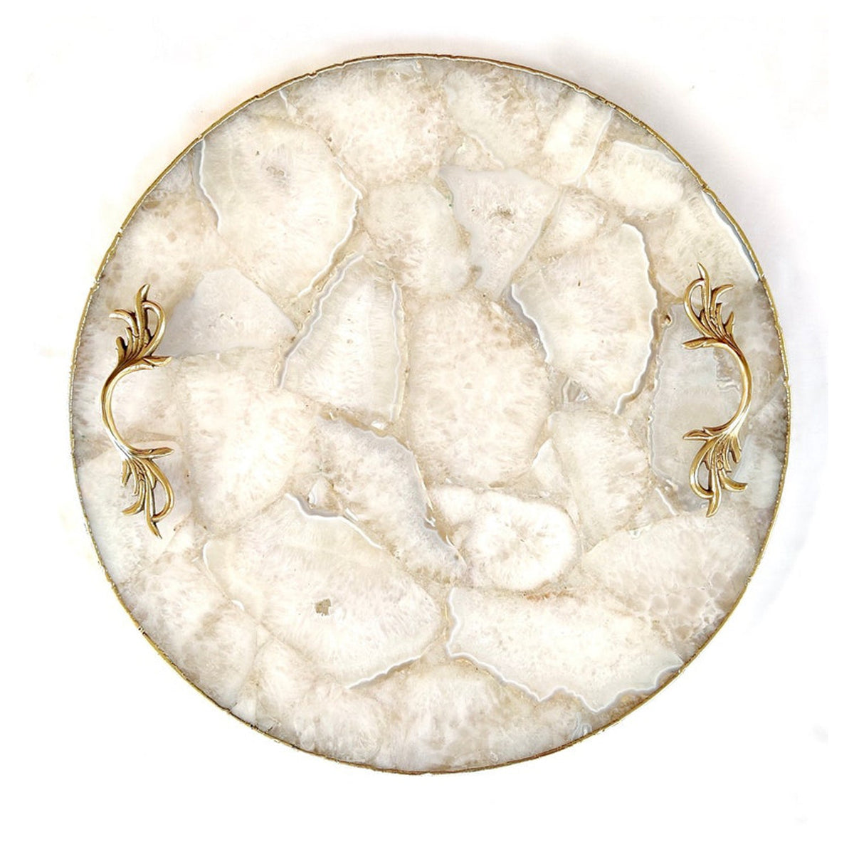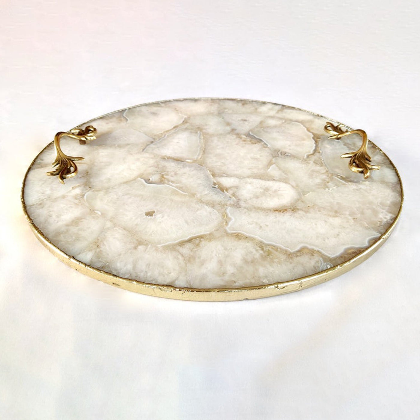 The natural look of agate stone creates a unique abstract pattern on this serving board. The tray is ideal for serving cheese or a fruit course.